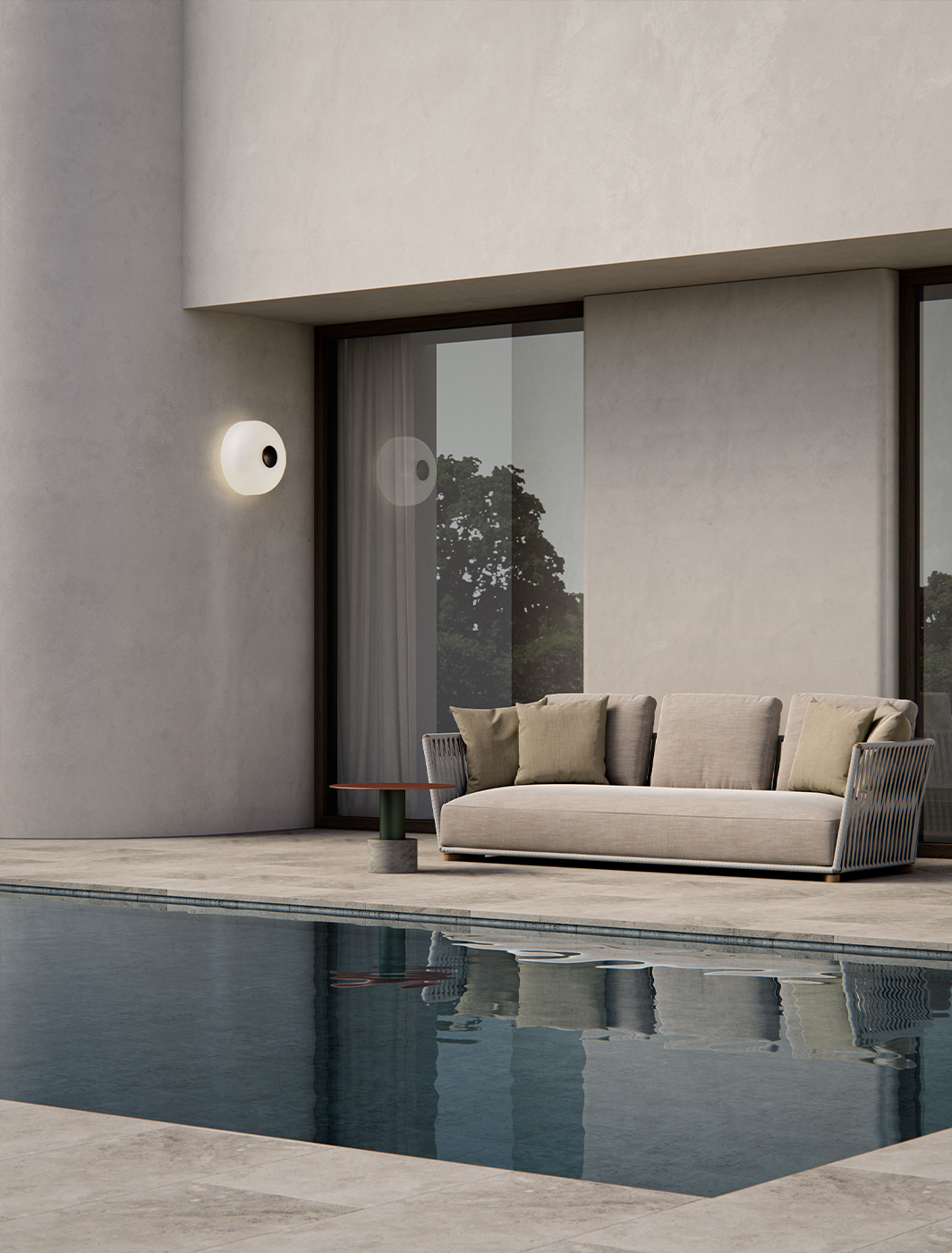 The Exterior Rolo Collection brings sculptural softness outdoors – an Articolo wall light defined by rounded form, material depth and a warm, atmospheric glow. Hand-finished by Articolo Studios, each exterior Articolo Sconce reveals nuanced texture while casting a gentle, architectural light. A contemporary alternative to traditional exterior fixtures and flat wall sconces, Rolo embodies the refined restraint of Articolo lighting, designer wall sconces and understated luxury wall sconces for outdoor spaces.