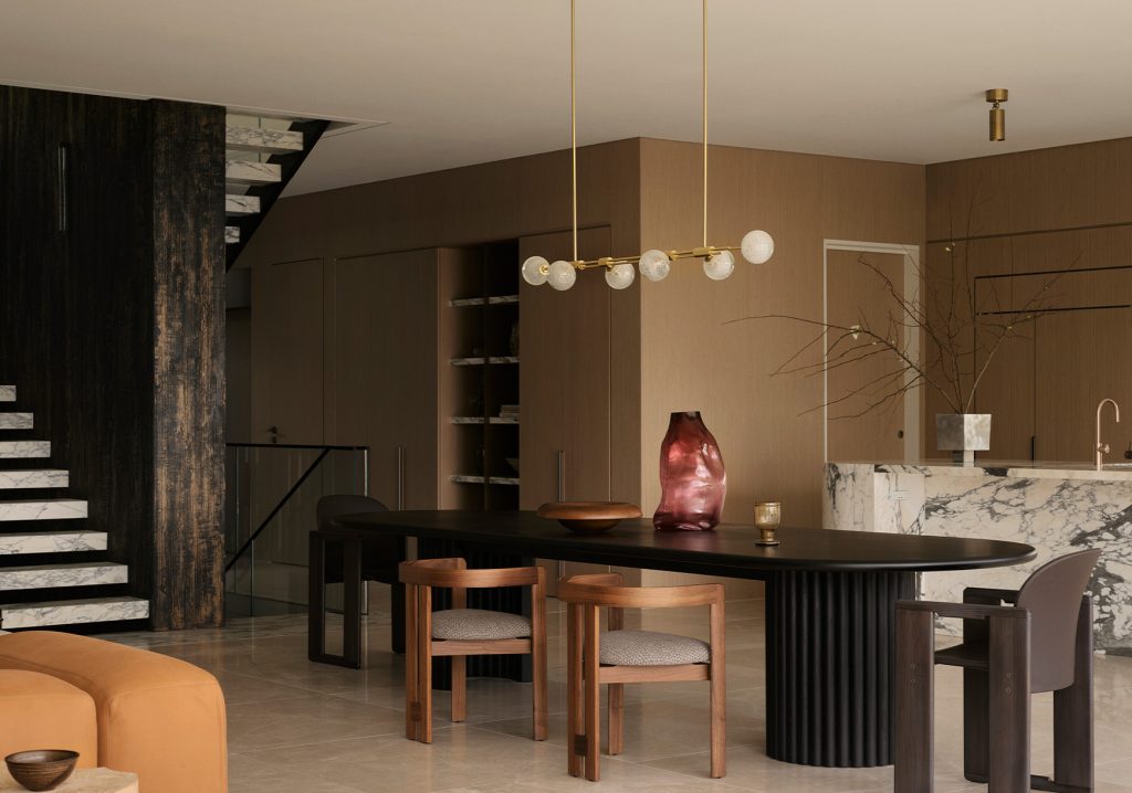 Articolo lighting is woven into Alexandra Kidd’s interiors as both a defining design element and a source of atmosphere. Their sculptural forms and material richness find their place across varied material palettes, moving between timber, stone, plaster and metal to contribute to spaces with depth, character and presence.